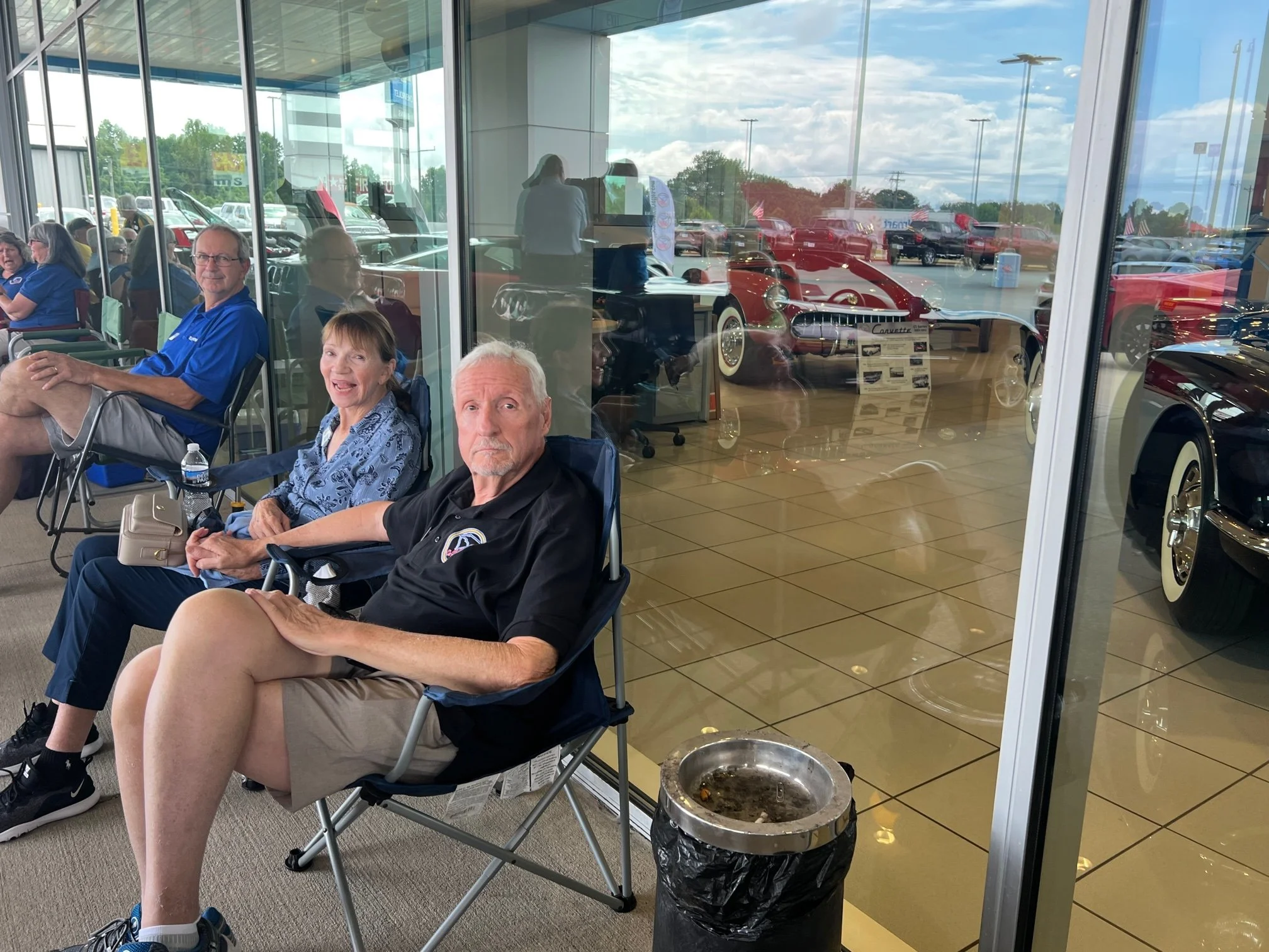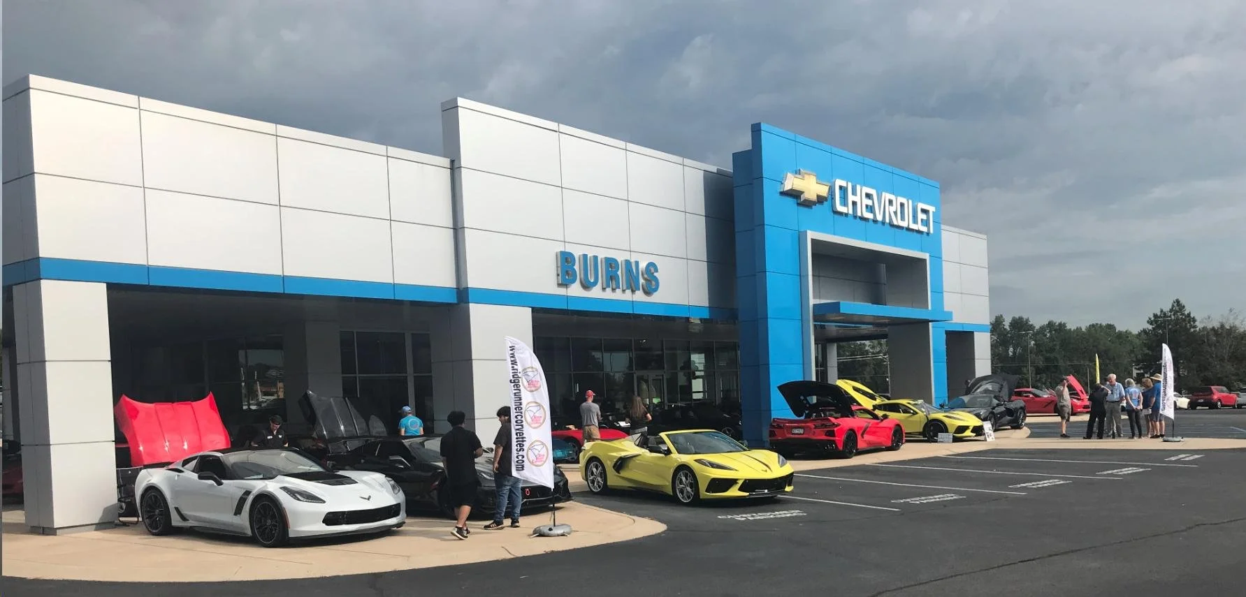 Burns Chevrolet in Gaffney, SC is celebrating their 100th year in business in 2023. The dealership embarked on a 100 days of giving campaign and they planned to top that campaign off with a 100th anniversary celebration to thank their customers and the public for their support. As a part of that celebration, they envisioned a display showcasing all 8 generations of the Corvette and they reached out to the Ridge Runner Corvettes club for help with that vision. The club polled its members and found that it could help fulfill that vision. The club ended up bringing more than 30 cars and all 8 generations to the dealership that day. There were also a couple of guest cars, a 1963 split window coupe provided by Tommy Pike and a 2023 Z06 provided by a Burns Chevrolet customer. The forecast called for rain, so Burns Chevrolet went above and beyond by allowing the club to park the earlier generation cars in the showroom and all most all of the remaining cars under the building overhang. A big surprise of the day was the unveiling of a 1954 Corvette restomod being created by Tommy Pike for John Brunett. Tommy Pike’s film crew was there to record the fabulous event. All in all it was a very memorable day for the Ridge Runner Corvettes club and for Burn’s Chevrolet. Many members took pictures that day and they are presented below in groupings of the person that took the pictures.