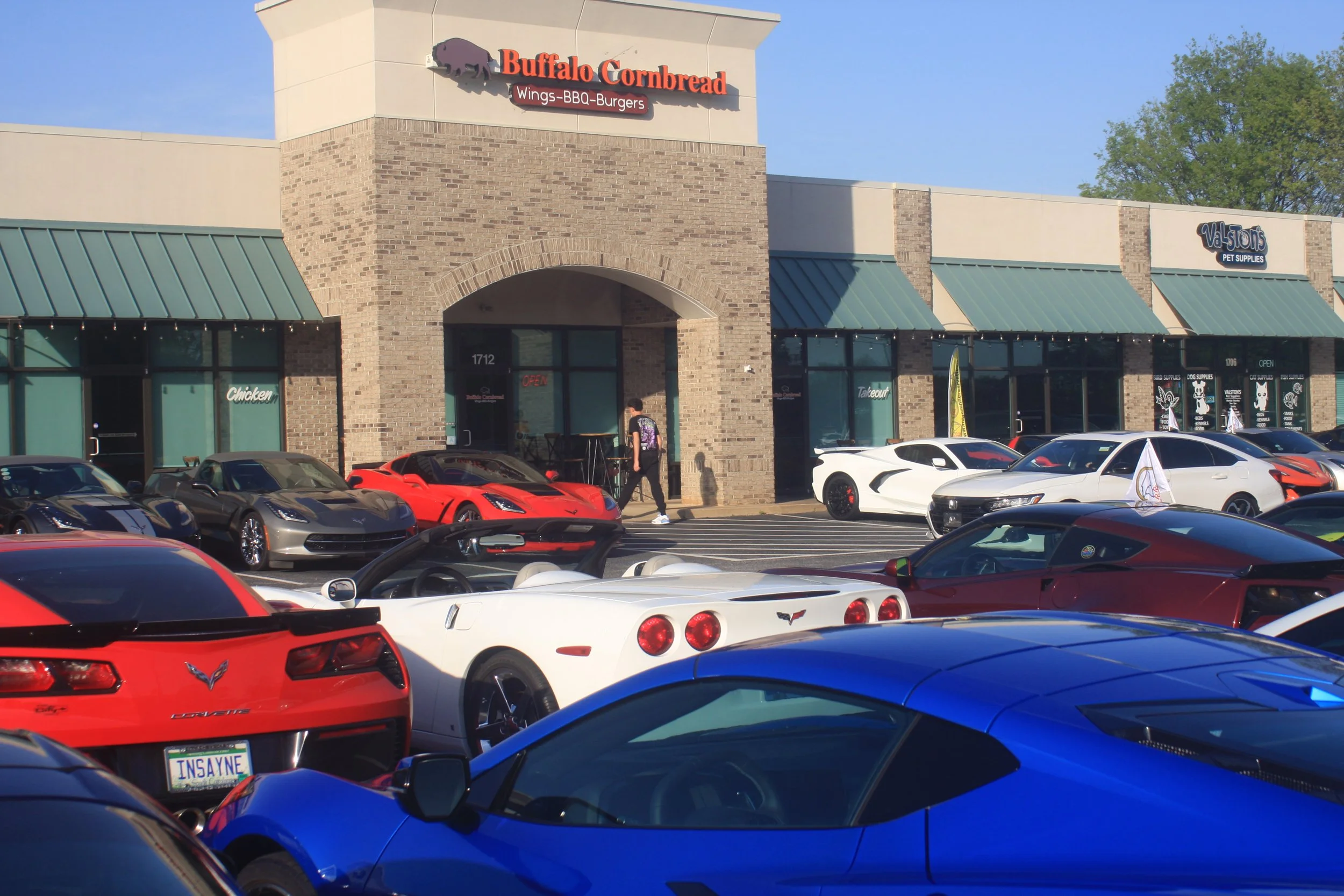 In memory of Tim Janilla, members drove their Corvettes to the April meeting. Unfortunately, the parking lot for Buffalo Cornbread is shared with other business so the Corvettes could not park together.